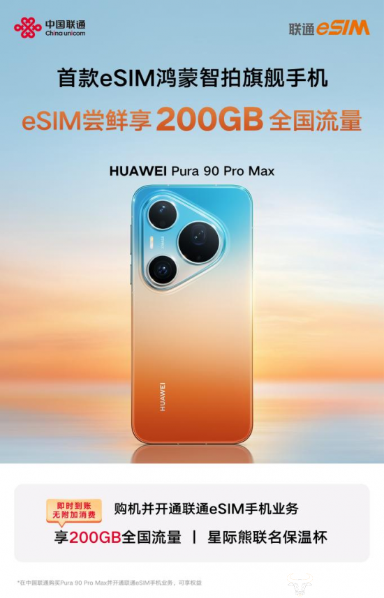 为了让记录生活的每一帧都不受限,联通准备了诚意满满的“e补”大礼包:购华为Pura 90 Pro Max,200G全国流量包直接送,告别流量焦虑;星际熊联名保温杯暖心相赠,商务质感与生活美学一步到位!