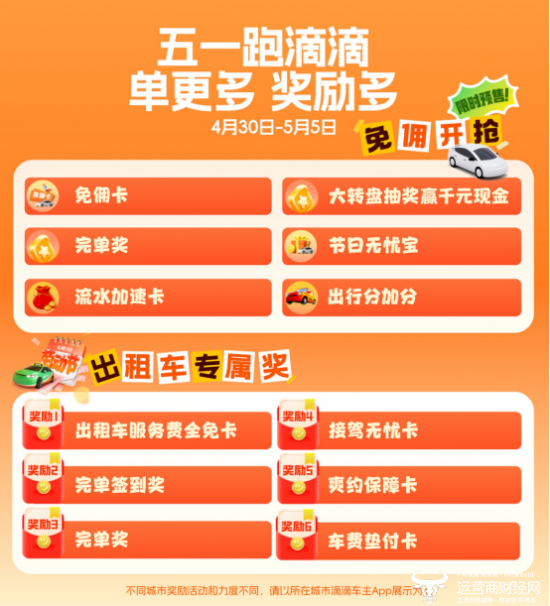 图为:滴滴“五一”发近4亿元司机补贴,上线多重奖励