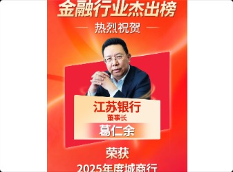 江苏银行董事长葛仁余入选“2025年度城商行十大杰出董事长”
