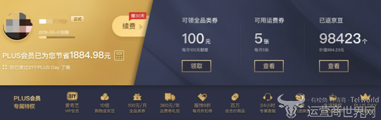 根据京东大数据显示,仅使用“运费券大礼包”这一项权益,近一年内所有PLUS正式会员共计节省了近10亿元的运费;同样颇受会员喜爱的“10倍返京豆”权益,近一年内累计返送给PLUS会员的京豆数高达1684亿颗,以1000颗京豆可抵扣10元现金计算,相当于回馈会员16.84亿元。
