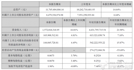 报告称,截止本报告期末,网宿科技总资产约117.66亿元,比上年度末增加14.64%;本报告期内,网宿科技营业收入约15.72亿元,比上年同期增加16.01%;归属于上市公司股东的净利润约1.64亿元,比上年同期增加4.81%。