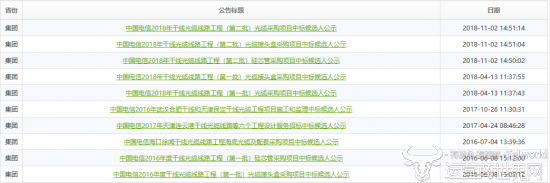 中国电信;光缆采购;中天