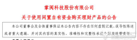 利用闲置资金购买理财产品的企业并不鲜见,但是像掌阅科技这么频繁的还真不多。如此看来,掌阅科技不仅有钱,还很会用闲钱赚钱。