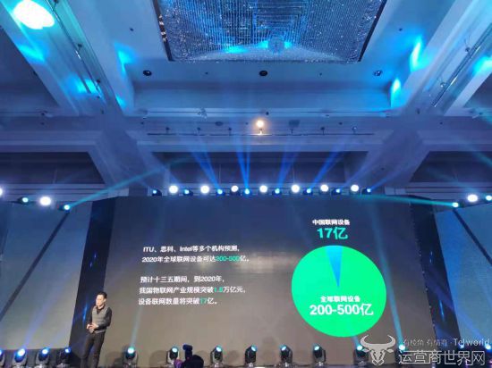 他介绍到,现在已经有多个机构预测,到了2020年全球联网设备可达200-500亿,预计十三五期间到2020年,我国物联网产业规模突破1,8万亿元,设备联网数量将突破17亿。