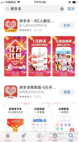 ▲11月27日23时左右,新电商app拼多多在苹果APP Store 陆续恢复上架。