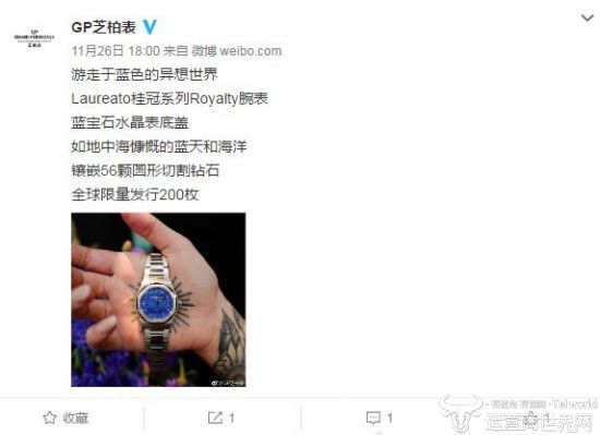 如今,卡地亚的每条微博都会有少则几十、多达数千条评论,劳力士的微博也从不缺粉丝互动,只有GP芝柏的微博冷冷清清。如果GP芝柏依然坚持佛系营销,长此以往或许会陷入恶性循环,知名度恐怕很难得到提升。
