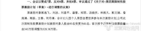 公告称,与会董事审议通过了《关于对<第四期限制性股票激励计划(草案)>进行调整的议案》,公司此次限制性股票激励计划激励对象人数由93名变更为81名,首次授予的限制性股票数量由343万股调整为328.56万股。