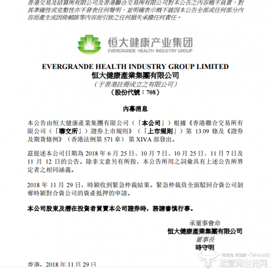 29日晚,恒大健康发布公告称,其全资子公司时颖收到香港紧急仲裁结果。其中,香港紧急仲裁员全面驳回“合资公司剥夺时颖对合资公司的资产抵押的申请”。