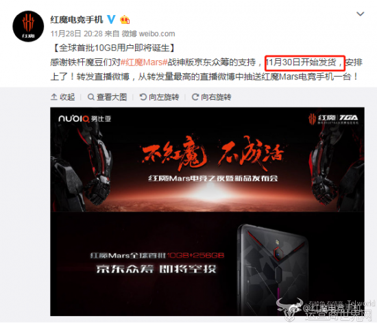 此前,红魔Mars电竞手机在京东商城进行众筹活动,不到两小时便完成了一百万目标可是让众多吃瓜群众惊掉了下巴。而今天,更是让众多铁杵魔豆们欢呼的一天,因为第一批红魔Mars电竞手机已经陆续开始发货了!