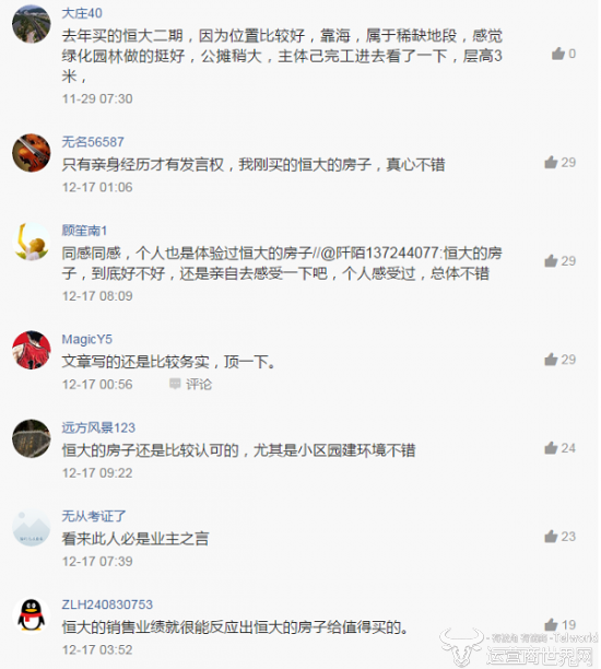 在众多的评论中,似乎很多人对恒大印象不错。