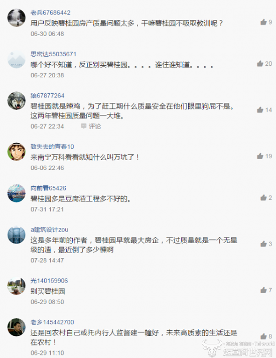 然而,碧桂园的口碑就值得深思了。