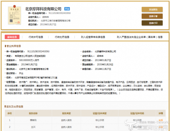 近日,多方信息显示,北京摩拜科技有限公司(以下简称“摩拜”)股东变更,胡玮炜等人完全退出,王兴成大股东。这意味着,摩拜4月份卖身给美团后,这一次彻底“改姓”了。