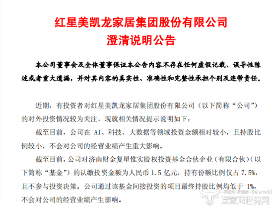 今日,红星美凯龙家居集团股份有限公司(以下简称为“红星美凯龙”)发布了澄清说明公告。