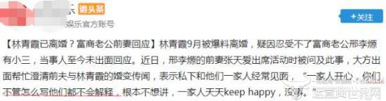 今年9月有媒体爆料林青霞已离婚,原因是忍受不了丈夫邢李㷧有小三。