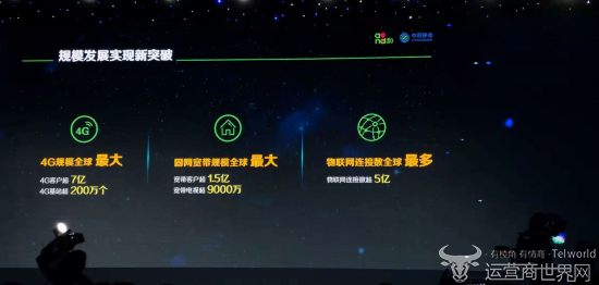 同时,简勤自豪地谈到了中国移动的三个“最”。他表示,中国移动4G规模全球最大,4G客户超7亿,4G基站超200万个。固网宽带规模全球最大,宽带客户超1.5亿,宽带电视超9000万。物联网连接数全球最多已经超5亿。