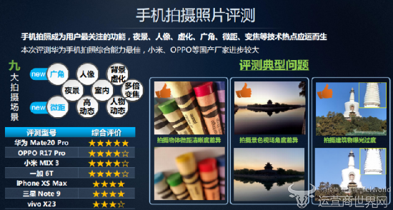 手机拍照成为用户最关注的功能,夜景、人像、虚化、广角、微距、变焦等技术热点应运而生。从手机拍摄照片评测上看,华为手机拍照综合能力最佳,小米、OPPO等国产厂家进步较大。