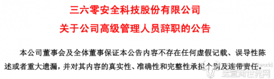 根据公告,360董事会于近日收到公司副总经理曲冰递交的书面辞职报告,其因个人原因辞去公司副总经理职务,相关辞职报告自送达董事会之日起生效,其辞去公司副总经理职务不会影响公司的正常运营。