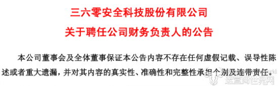 此次,时隔大半年之后,360新一任财务负责人终于出炉。