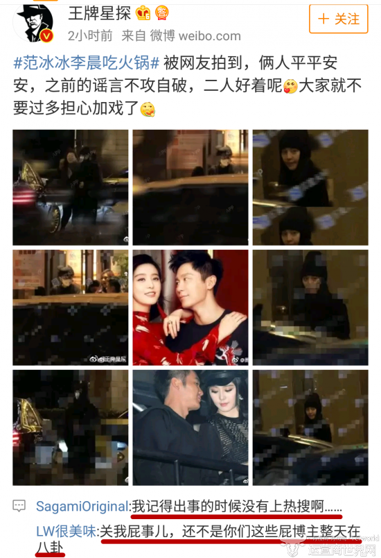 自从范冰冰陷入阴阳合同事件之后,诸事不顺,甚至有舆论一直在攻击范冰冰与李晨的关系不和。但近日,有网友拍到范冰冰和李晨深夜外出前往火锅店吃火锅。此事一出,虽然俩人之前不和的谣言不攻自破,但却遭遇了网友的怒怼,称不想看污点明星!