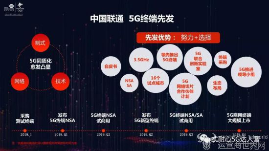 中国联通在5G频段分配上,获得了国际主流的3.5GHz频段,这一频段产业链成熟度最高,终端也最易支持,可以说2019年领先推出5G终端已是板上钉钉。