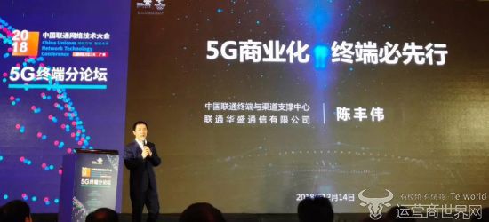 12月14日,2018年“中国联通网络技术大会5G分论坛”在广州召开。会上,中国联通终端与渠道支撑中心、联通华盛有限公司副总经理陈丰伟发表“5G商业化 终端必先行”主题演讲。面对行业热议的5G话题,陈丰伟表示,5G存在巨大商机毋庸置疑,但是5G的商业化是根本,即如何“快赚、多赚和真赚”,如果没有商业化,一切都是不可持续的。而终端是5G面向用户,连接网络和实现业务的基础,5G终端的出现,也将催生5G时代的杀手级应用。