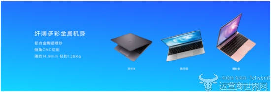 对于职场人士而言,笔记本不仅是办公工具,其外观更在一定程度上体现着个性及品质追求。华为MateBook 13外形设计采用“无界限”的设计理念,轻薄金属机身,侧边曲线圆润有弧度,倒角采用铝合金CNC钻切。精密陶瓷喷砂,在保持光泽内敛的同时,带来舒适的触摸手感,并且让整机如宝石般温润而具内涵。华为MateBook 13提供三种配色可供选择,深空灰和皓月银,经典且光芒内敛;樱粉金配色,温婉却张力十足。