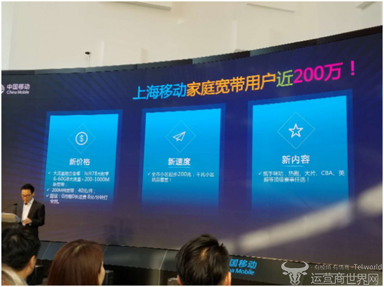 运营商世界网讯,在上海移动4G五周年暨新业态营业厅开业仪式上,上海移动副总经理梁志强会上表示,上海移动的家庭宽带用户达到近200万,并公布了“三新”理念。