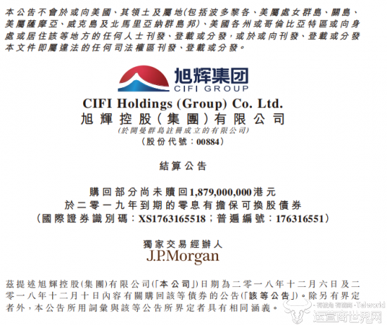 近日,旭辉集团发布公告称其将购回部分尚未赎回18.79亿港元于2019年到期的零息有担保可换股债券。具体情况如下: