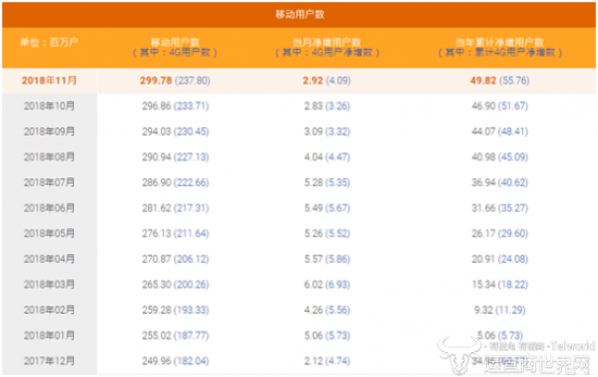 日前,中国电信公布了11月份运营数据,当月移动用户总数近3亿户,4G用户数净增了409万户。
