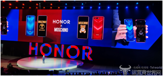 值得一提的是,发布会上还推出了荣耀V20和MOSCHINO的联名设计款,主要有幻影蓝、幻影红两种颜色。