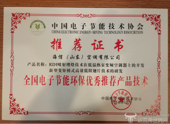 据了解,此次大会旨在推进节能技术改造,推动节能环保新技术、新装备和新产品的推广应用。评选中,专家评审组对海信空调的“RDI喷射增焓技术在低温热泵变频空调器上的开发”、“新型变矩桥式高效低阻翅片技术的研发”两项技术给予了高度的评价和认可。