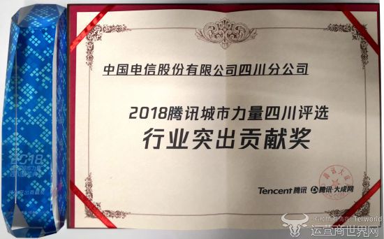中国电信四川公司荣获2018腾讯城市力量“行业突出贡献奖”