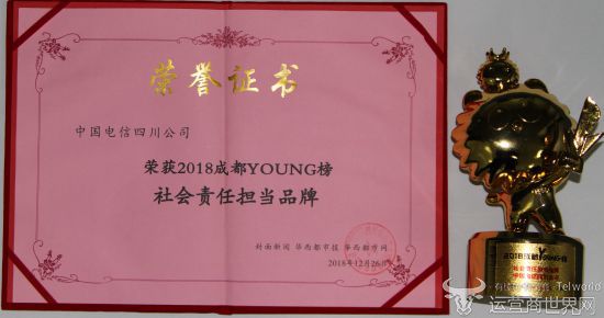 2018年12月26日,2018腾讯城市力量榜单和2018成都YOUNG榜同日发布,中国电信四川公司同时荣获“行业突出贡献奖”和“社会责任担当品牌”荣誉。
