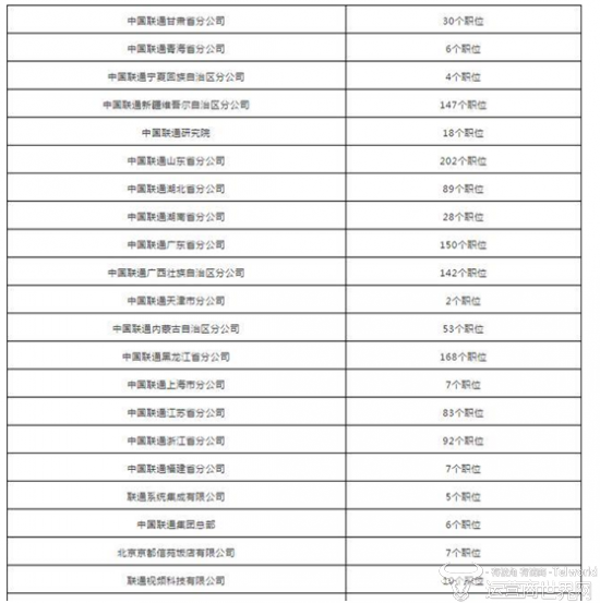 据公告显示,本次中国联通招聘共有42家分公司,1741个岗位,招聘总人数接近3000人,以下是部分招聘汇总: