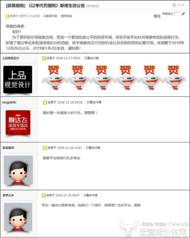 “以考代罚”推出后,不少商家在卖家论坛里留言表示欢迎。
