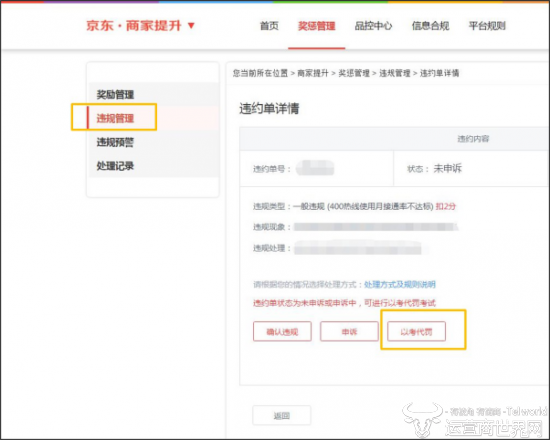 商家满足“以考代罚”条件后,即可在商家后台—奖惩管理—违规管理看到入口