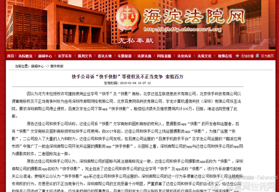 今日,海淀法院网发布消息称,“快手快影”因未经授权许可擅自使用企业字号“快手”及“快影”商标,遭北京达佳互联信息技术有限公司、北京快手科技有限公司以侵害商标权及不正当竞争纠纷为由将其诉至法院,要求深圳麻帮公司停止侵权,赔偿经济损失及维权费用共计100万。
