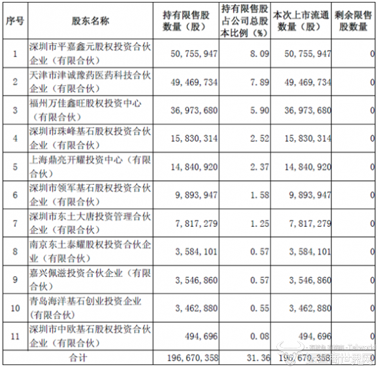 公告显示,本次限售股上市流通数量为19667035万股,本次限售股上市流通日期为2019年1月11日。