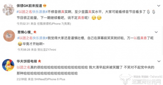 昨晚,优酷《以团之名》抢先上线,随即“以团之名快乐源泉”的话题登上微博热搜榜,紧张到忘词的“天籁之音”魏子越、抖音狂人宗赢、呆萌系东北男孩孙天成……执着于梦想的一群男孩凭借真实、可爱、阳光的特质实力圈粉,真实反映了节目正能量青春综艺的定位。