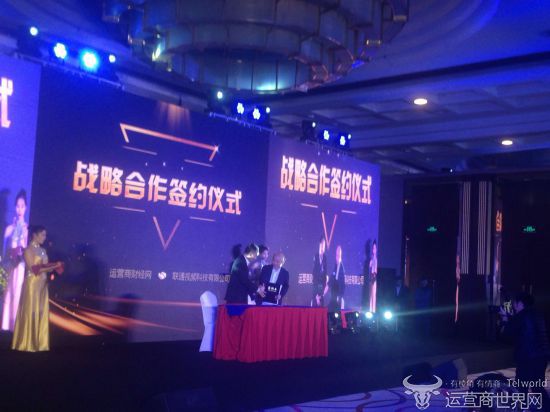 1月20日,在2019中国财经TMT行业“领秀榜”盛典上,运营商财经网CEO兼总编辑康钊分别与中国联通研究院院长张云勇、联通视频科技有限公司蔡熙雁上台签约。