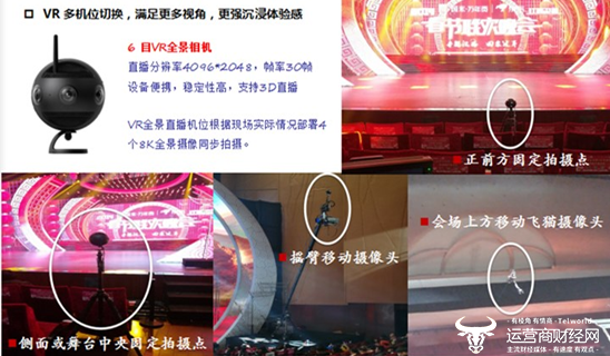 本台春晚,在场馆内外部署多台6目8K超高清VR全景摄影机同步拍摄,呈现出360°的视觉效果,观众朋友可以身临其境般的在“观众席”上观看表演,自由选择自己想看的角度,这是与传统电视观看的最大区别。