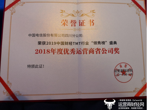 中国电信四川公司荣获“2018年度优秀运营商省公司奖””