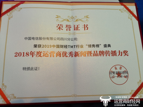 中国电信四川公司“2018年度运营商优秀新闻暨品牌传播力奖”