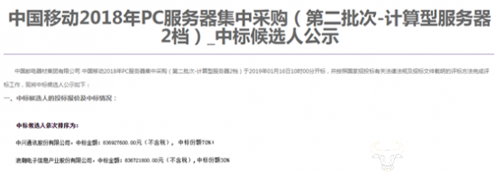 日前,中国移动公布了2018年PC服务器集采(第二批次-计算型服务器2档)中标候选人结果,中兴、浪潮一同拿下近8.4亿大单。