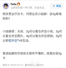 借用一位知乎高赞用户的回答:“2G可以看苍老师小说,3G可以看苍老师图片,4G可以看苍老师,5G可以和苍老师VR互动。”