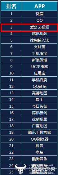 榜单显示,进百强榜前25名的有5款视频类APP,包括“优爱腾”这三个头部玩家的应用,以及两款短视频APP快手和抖音。2018年短视频行业依然保持火热,抖音更是成长迅猛隔断时间就宣布一个新数据,一定程度上也给长视频应用带来成长压力。