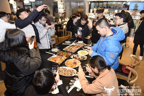 (7FRESH西安中登广场店的现场来宾对着美味大餐拍照留念)