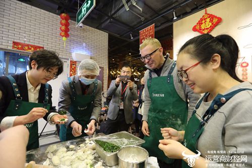 (7FRESH北京华宇店内,现场来宾跟大厨学包饺子)