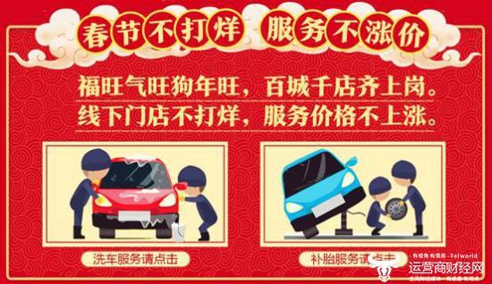 京东敏锐感知到其中的用户痛点,从去年起便推出了春节养车修车不打烊、不涨价的活动,消费者通过京东就可以找到最近的门店,线上下单、线下车辆维护,省时省力又省钱。今年也是一样,京东春节汽车维护不打烊不涨价的“百城千店”计划再度启动。不过相比于去年,今年的量级也有所提升,近300个城市1300多家线下汽车服务门店参与其中,主打春节洗车和补胎服务,触及的地域更广、触达的消费者也更多,从1月28日至2月10日,专场期覆盖了整个春节假期,尽最大可能予广大消费者以便利。