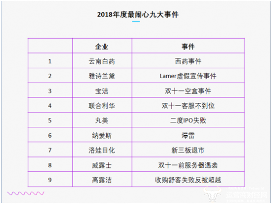 近日,运营商财经网发布了《2018年度中国消费品行业报告》,盘点了2018年度九大最闹心事件,众多知名日化企业上榜。